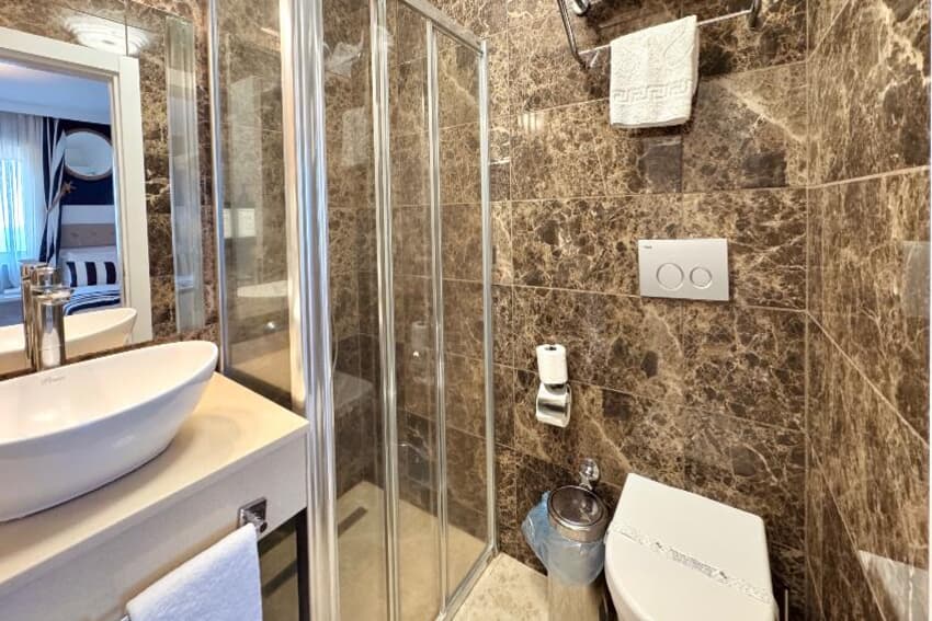 Kısmi Deniz Manzaralı,  Balkonlu, Kasa, Minibar, Saç Kurutma Makinesi, TV,  İnternet, Klima, Duş, Makyaj Aynası, Çay&Kahve