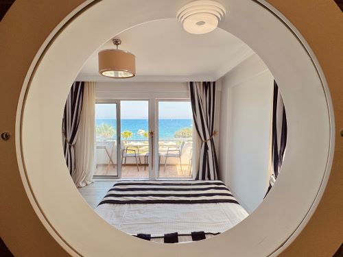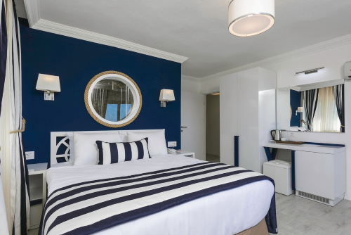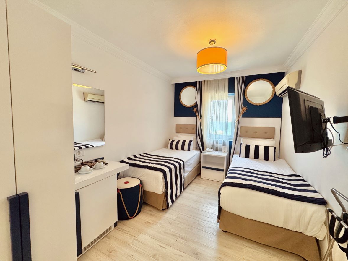 Executive Suite Odalarımız 50 büyüklüğünde Deniz Manzaralı ve balkonlu bir oda tipidir. Odalarımızda 1 adet çift kişilik ve 2 adet tek kişilik yatak mevcuttur.